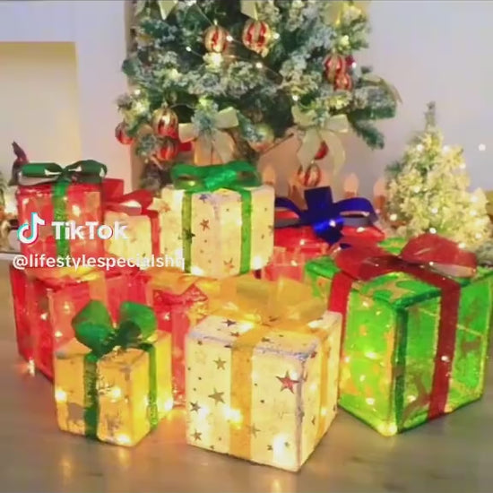 🎁 Illuminated Gift Box Design – Each box includes built-in LED lights that glow from within, turning classic gift shapes into festive décor.